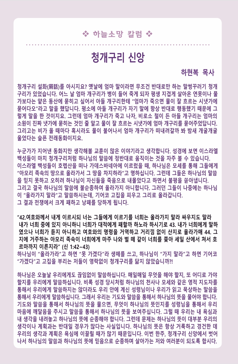 | 이전글 | 울 때가 있으면, 웃을 때도 있다 | 운영자 | 2025.06.20 | 0 | 223 |