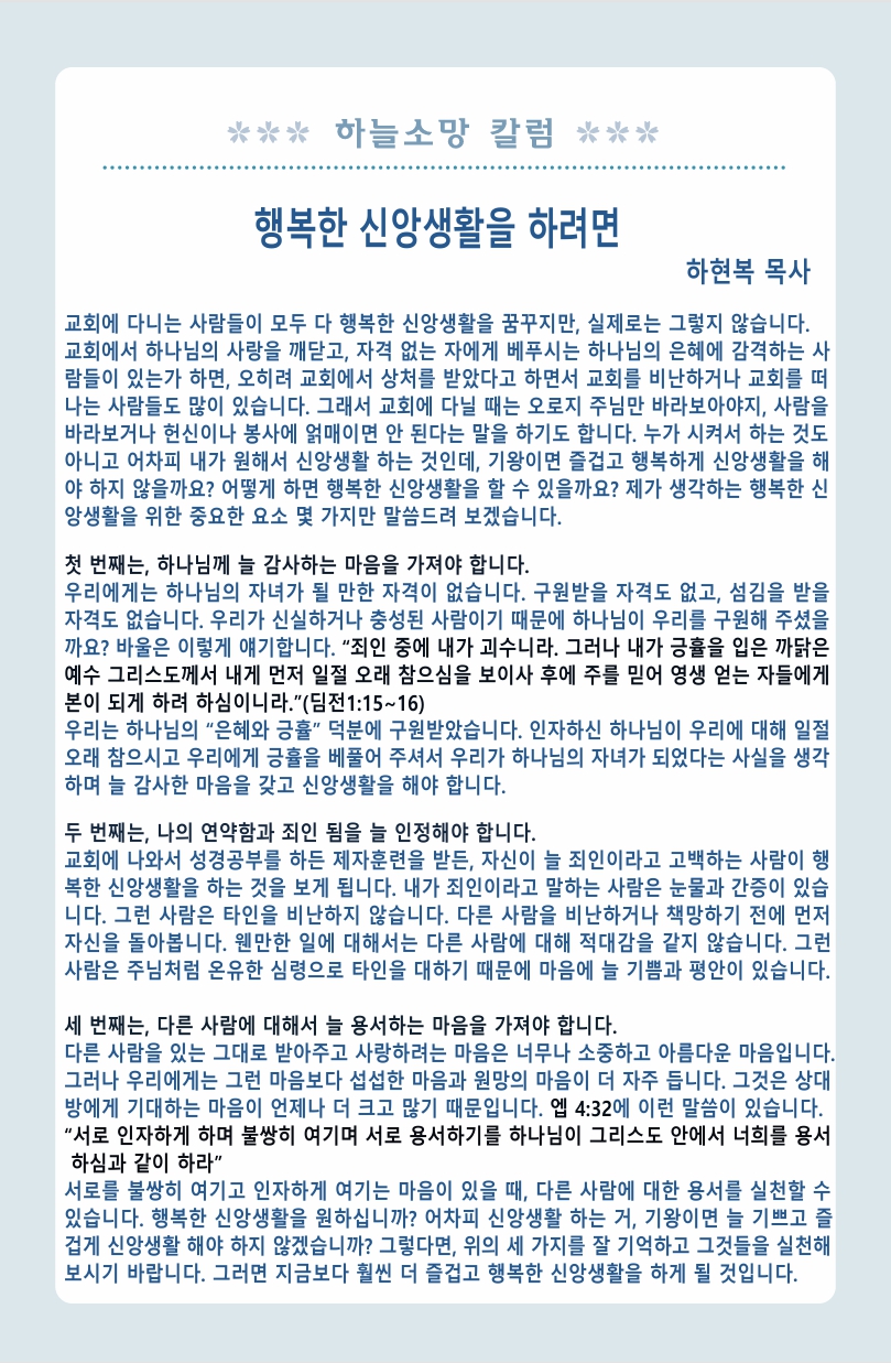 행복한 신앙생활을 하려면